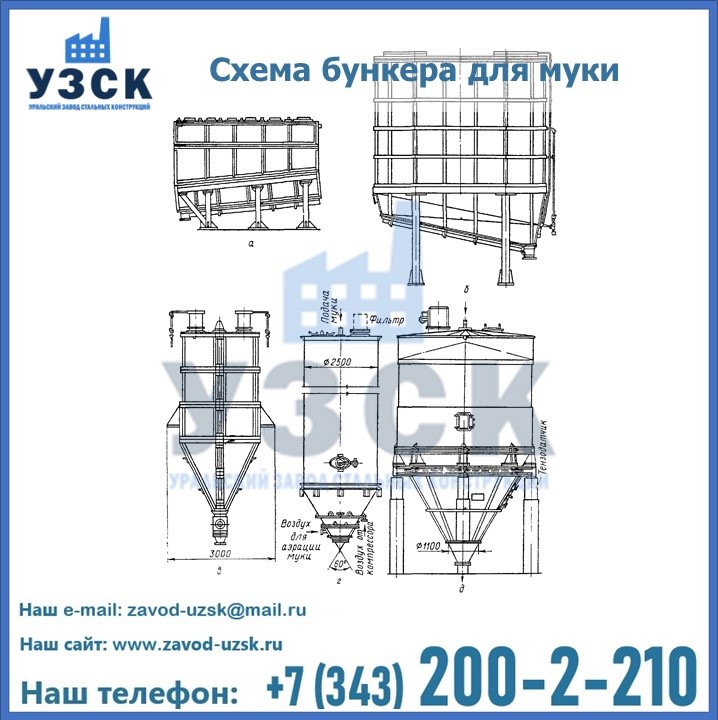 Завод «УЗСК» в Твери проектирует, производит и поставляет целевое оборудование, в том числе, бункеры для хранения муки и прочих сыпучих материалов.
