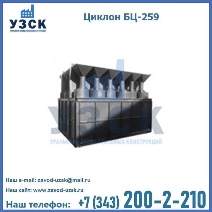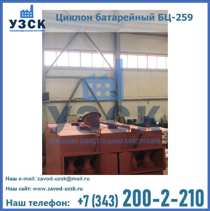 Приобрести качественное оборудование, в том числе, циклоны БЦ-259, можно в компании УЗСК в Твери. Мы предлагаем долговечную и надежную продукцию по приемлемой цене. Заказать и купить циклоны или другие изделия высокого качества можно через сайт Уральского Завода Стальных Конструкций, или позвонив по указанному в разделе «Контакты» телефону.