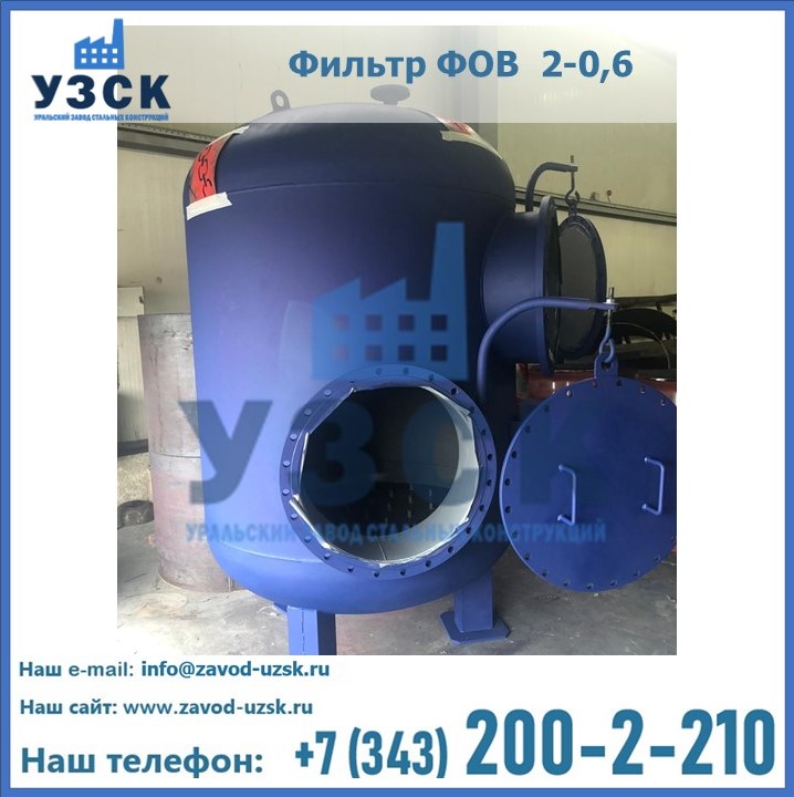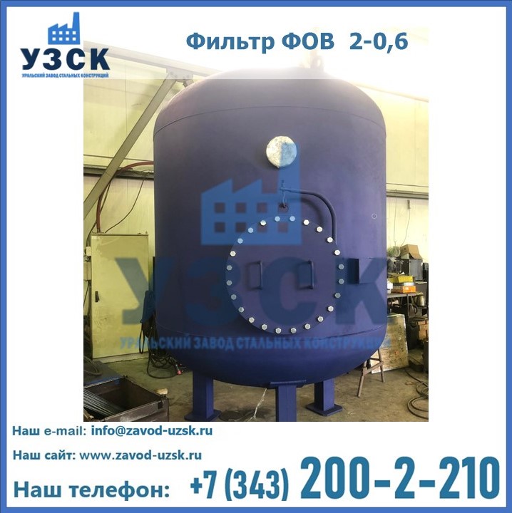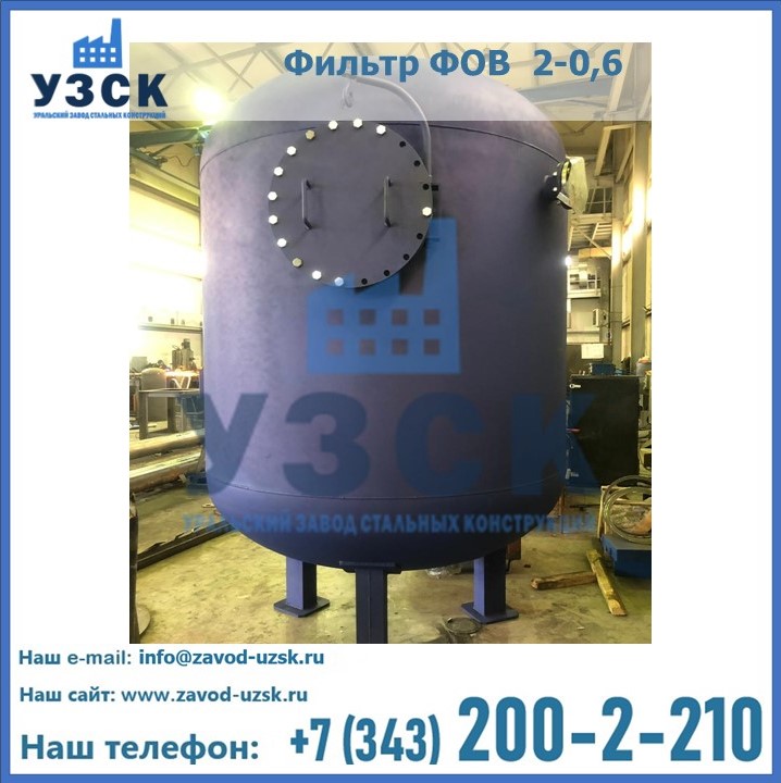 Удаление взвешенных веществ различного уровня дисперсности из рабочих жидкостей эффективно проводит фильтр осветлительный типа ФОВ (скорый или механический) — вертикально-цилиндрической формы установка, разработанная для систем водоподготовки различного класса. Оборудование представляет собой однокамерный агрегат для очистки воды рекомендованный для применения на станциях очистки стоков, в коммунальных котельных, на ТЭЦ, в промышленных отопительных системах и пр. Заказать производство ФОВ фильтров предлагает наш Уральский завод стальных конструкций в Твери. У нас можно купить фильтрационное оборудование различного класса и типа, в том числе фильтры ФОВ из нержавеющей стали.