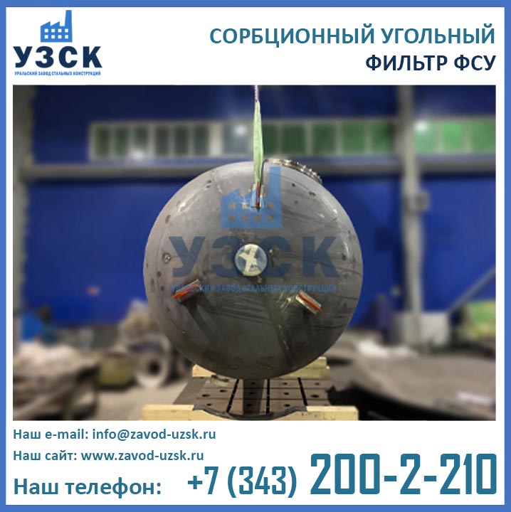 Качественную работу отопительных и промышленных котельных, линий по очистке конденсата и природных вод, электростанций обеспечивает фильтр сорбционный угольный типа ФСУ — вертикальный сосуд с одной камерой цилиндрической формы. Основное назначение оборудования состоит в глубокой очистке возвращаемого с производства конденсата от запахов, органических загрязнений и привкусов. Использование ФСУ в системах водоподготовки гарантирует очищение субстанции от масел, органических примесей, остатков нефтепродуктов до нормального значения — 0.52-1.0 мг/л. Купить в Твери угольные фильтры предлагает наш Уральский завод стальных конструкций. Мы выполняем производство ФСУ под нужды предприятия, возможно изготовление сорбционных фильтров ФСУ из нержавеющей стали включая корпус и внутренние устройства.