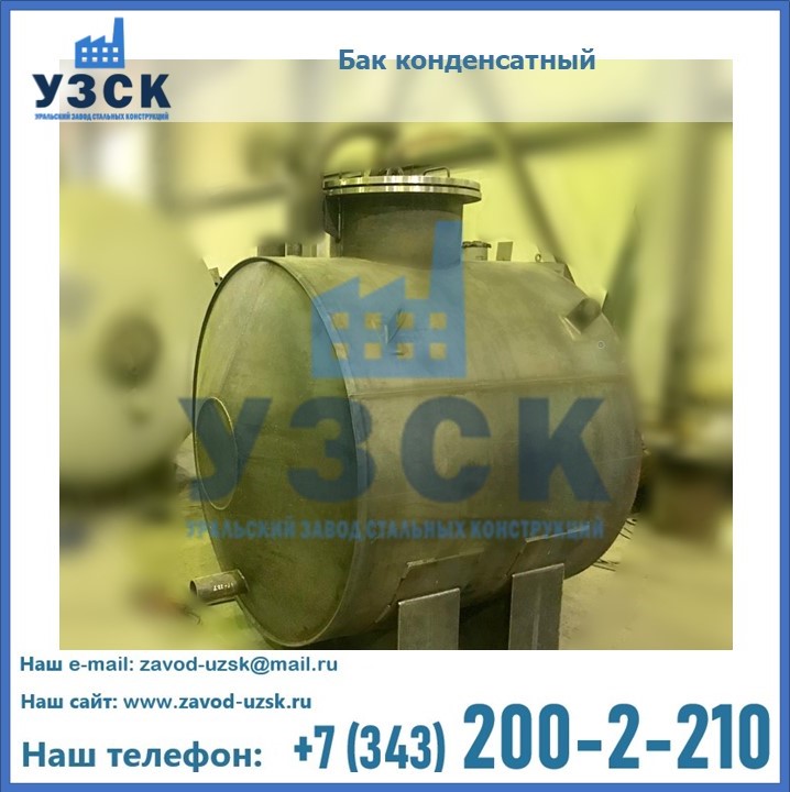 Многие заказчики стараются конденсатные баки купить по выгодной цене в компании «УЗСК» в Твери. Причин несколько. Производитель поставляет емкости с полным комплектом лестниц, площадок обслуживания. Бак после гидравлических испытаний покрывают специальной внутренней и наружной краской, накладывают теплоизоляцию или наваривают крепеж для навески минматов. Условия теплоизоляции согласуются с заказчиком.